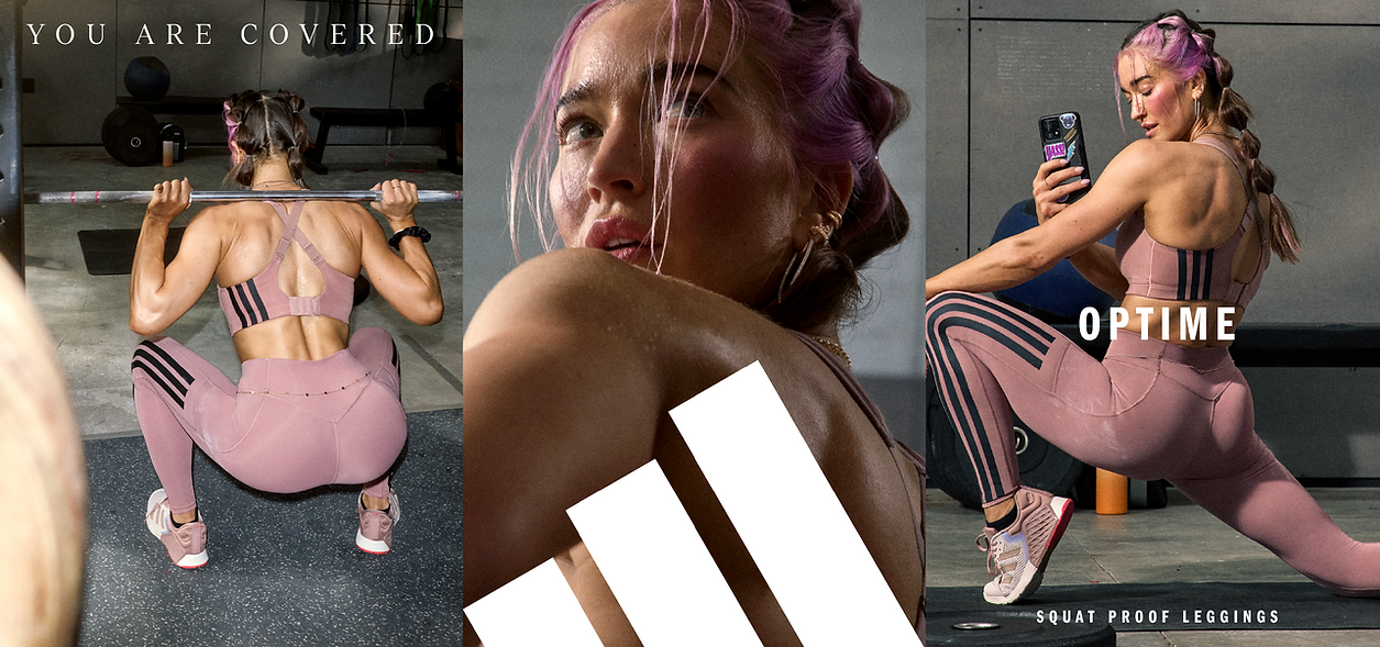 In this cheeky campaign for adidas women's training, we'll showcase how adidas Optimé squat-proof leggings give women confidence in the gym. When your leggings are squat-proof, you know that whatever you call it...you are covered.